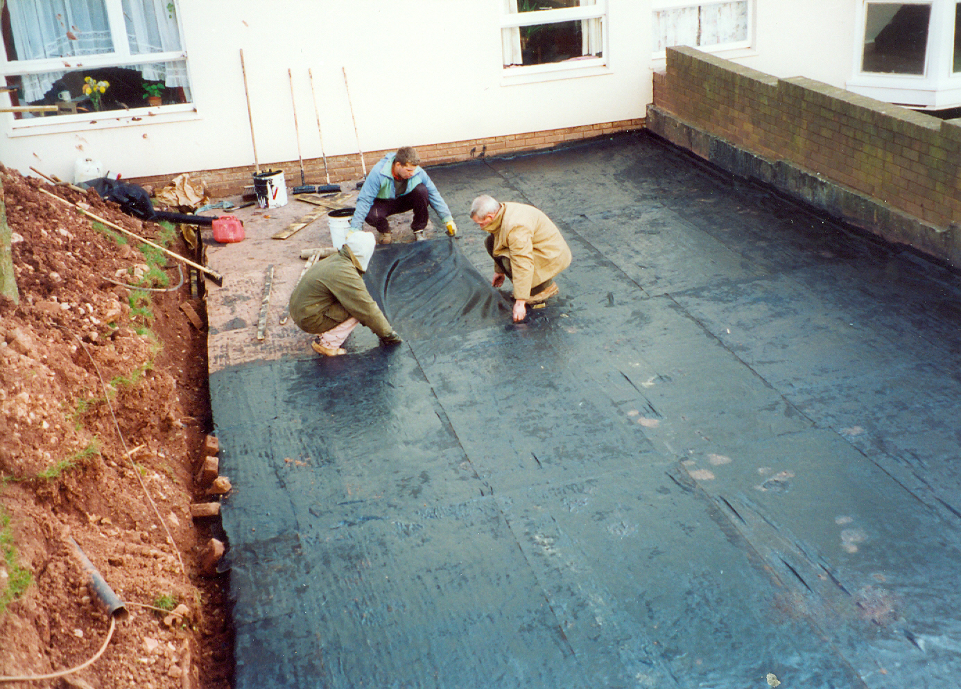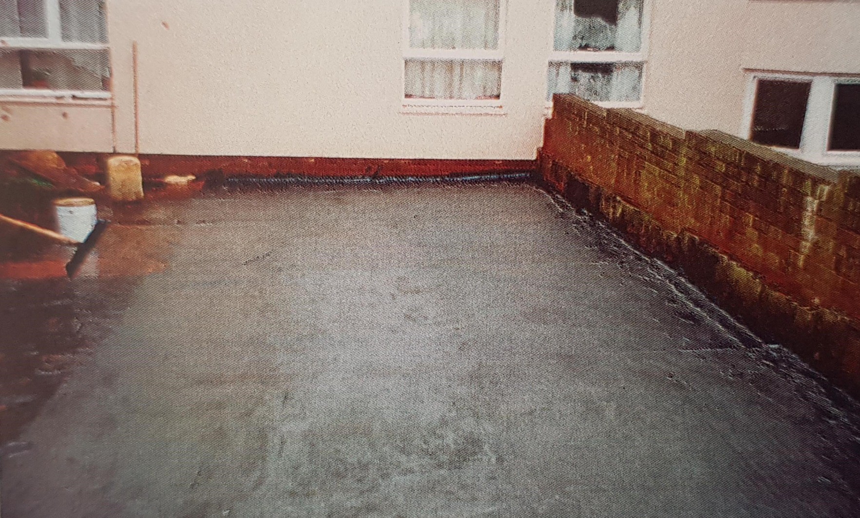 Non-bituminous, one component polymeric compound with fibres incorporated for strength and special resins giving exceptional adhesion and flexibility.