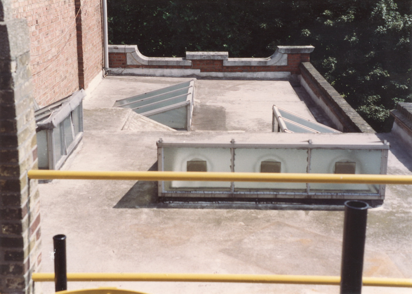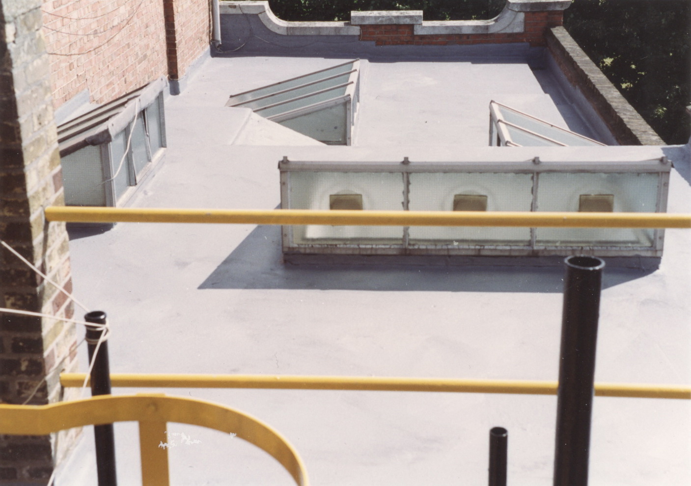 Colour good, surface dull due to chalking. Signs of erosion of binder and fibres exposed. Coating still integral and intact with substrate protected against ingress of moisture.